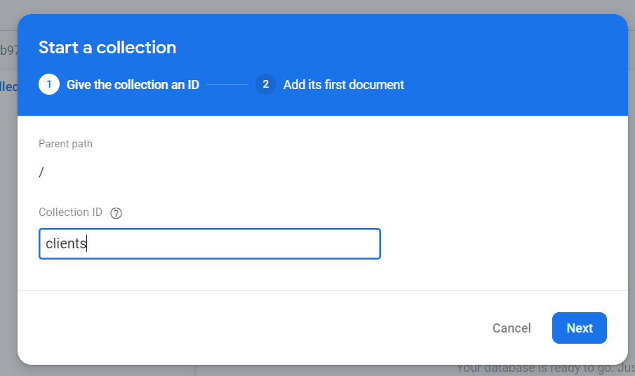 Collections in Firestore are the tables for the relational database. To fetch data from Firestore, we need to fetch a collection first. Add the database configuration file and the needed collection as values for the 'collection' function