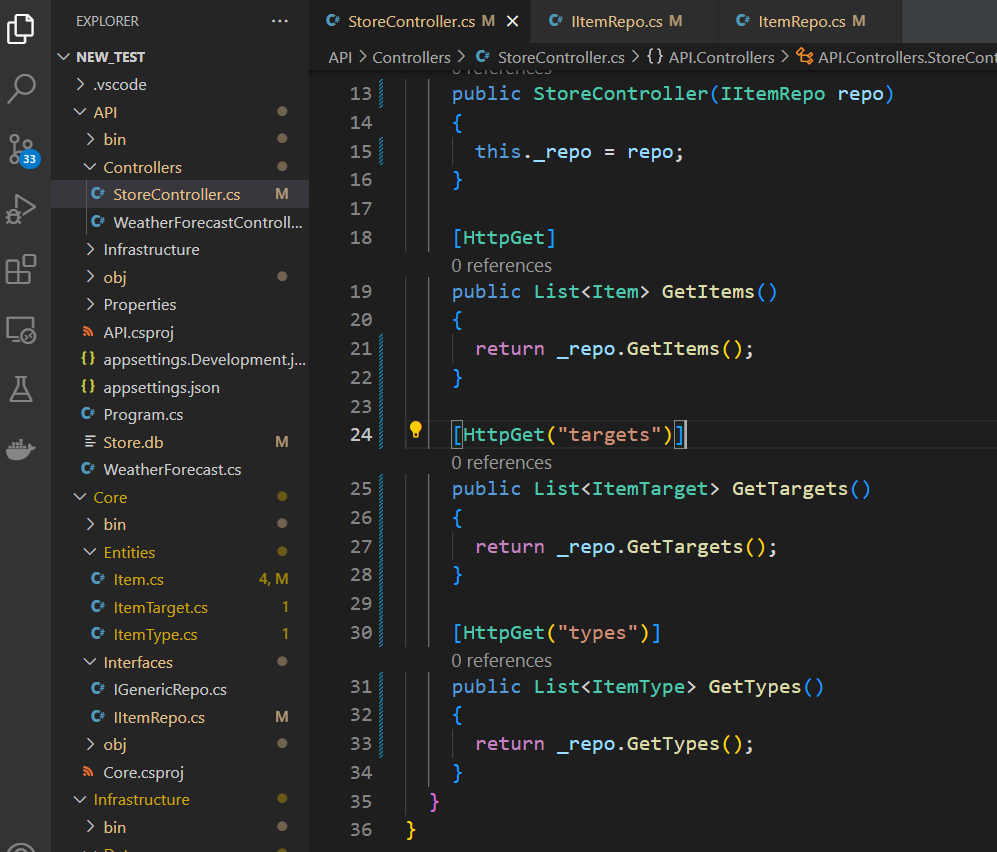 데이터를 요청하는 메서드가 구현된 레포지토리로 이동하여 엔티티 프레임워크 네임스페이스를 레포지토리 폴더에 추가하고