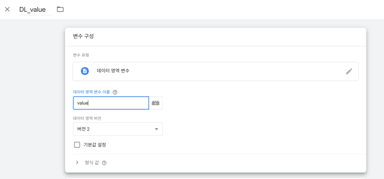 ※ 예제에서 사용된 데이터레이어 이름: value