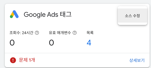 우측에 점 세개 선택 -> 소스수정 (태그가 설치되지 않은 경우 하단에 '태그설치' 선택