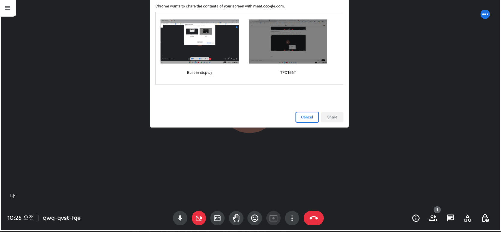 공유할 모니터를 선택하고 'Share' 선택