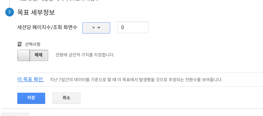추가로 금전적 가치와 유입경로도 설정이 가능한데요. 유입경로는 목표까지 도달하기까지의 경로를 의미합니다.