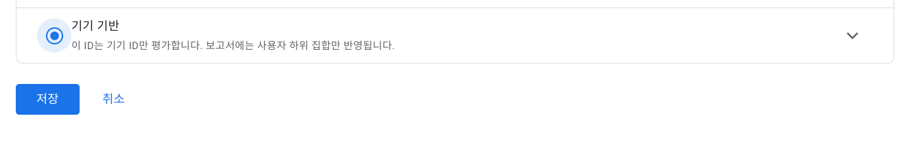 사용자 특정정보를 수집하지 않고 디바이스 아이디만 사용하는 '기기 기반' 옵션을 선택한 뒤 '저장'을 누릅니다.