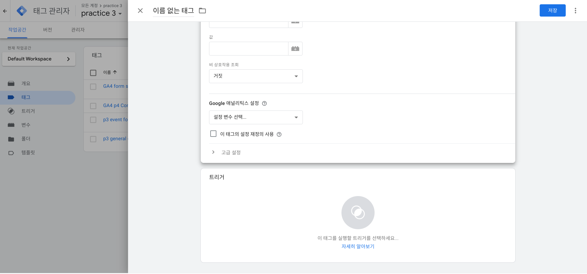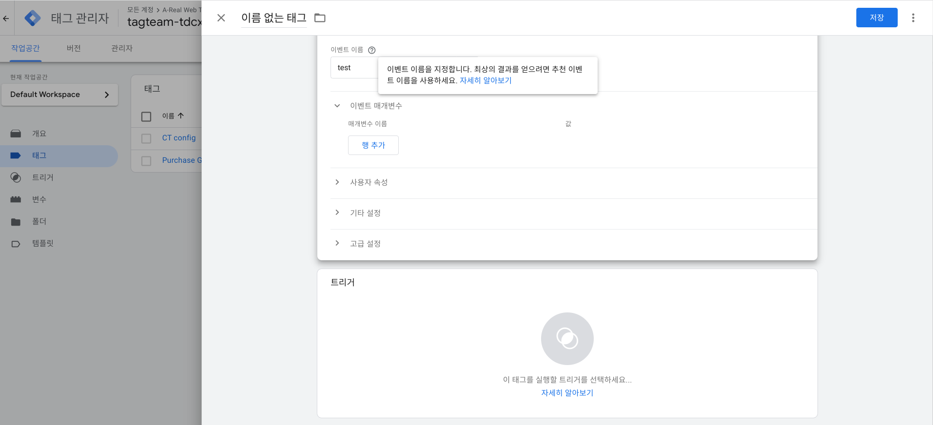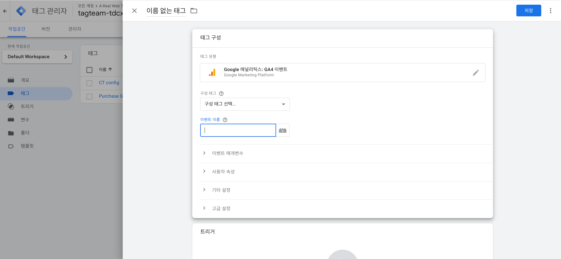 추적하고자 하는 이벤트의 트리거를 설정 후 '저장'