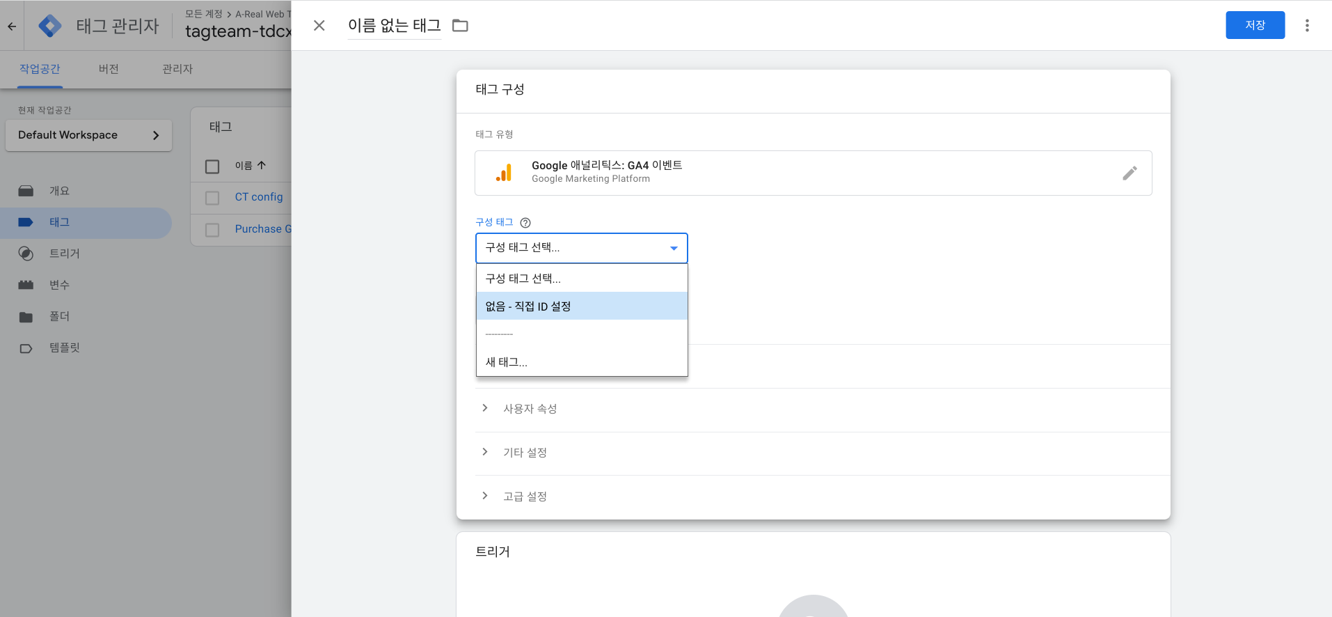 구성태그에 해당 GA4 측정아이디를 목록에서 선택