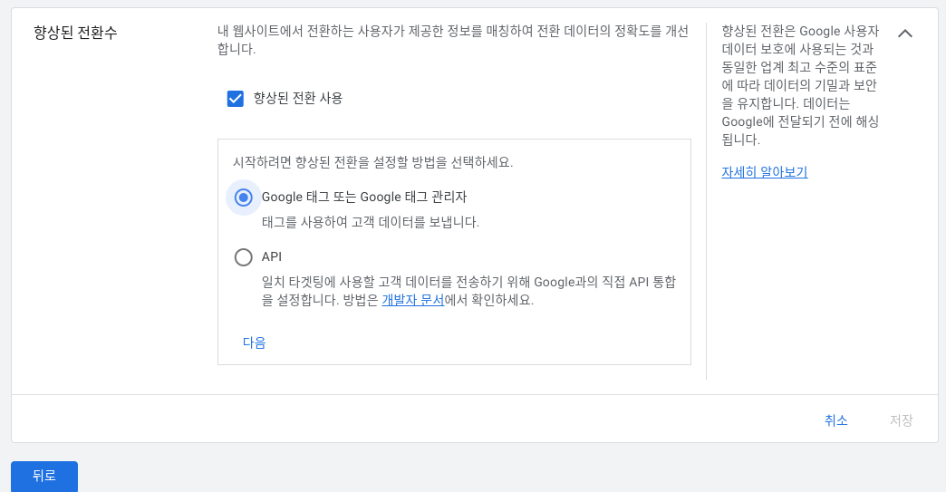 구글 향상된 전환 (향상된 전환 설정)