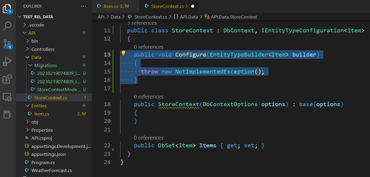 제약조건은 'IEntityTypeConfiguration'인터페이스를 사용하여 콘텍스트 파일에서 설정합니다. 아래처럼 인터페이스를 추가하고