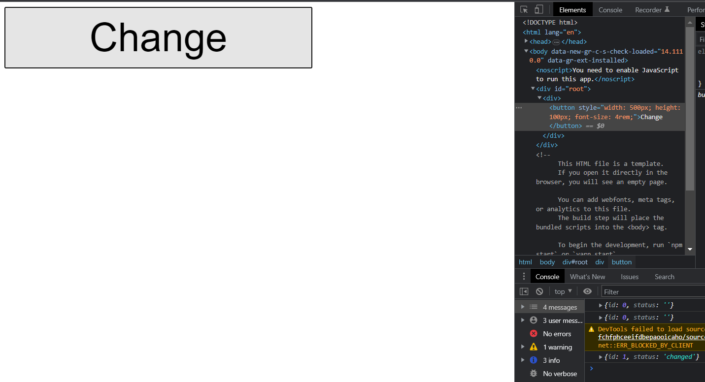 앱을 가동하고 버튼을 클릭하면 아래처럼 상태변화가 감지되는 것을 확인가능합니다.