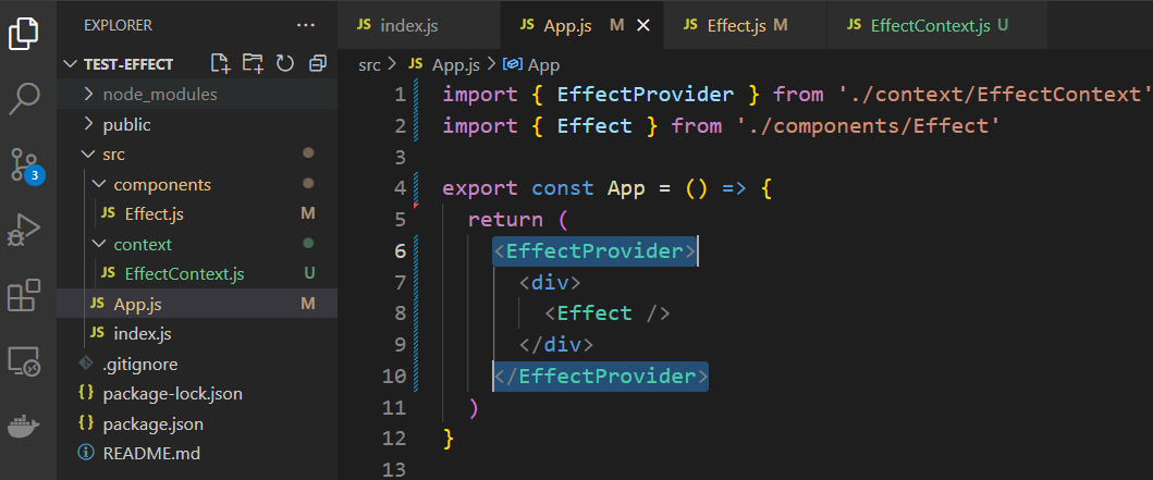 사용하고자 하는 컴포넌트에 유즈이펙트를 가져오고 아래처럼 설정합니다.