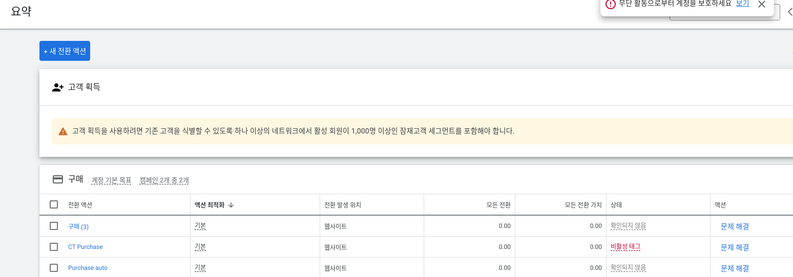 해당 항목에서는 전환의 카테고리 또는 해당 전환을 캠페인의 주 액션 (입찰에 영향을 주는 전환)으로 사용할지 여부를 설정 가능합니다.