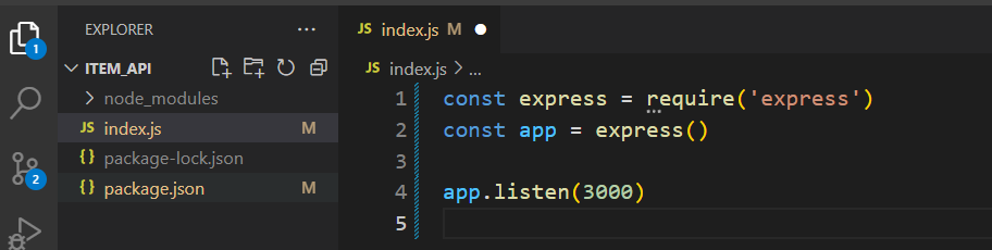 서버코드가 들어갈 .js 파일을 생성합니다 (주로 server.js, app.js라는 파일명을 많이 사용합니다).