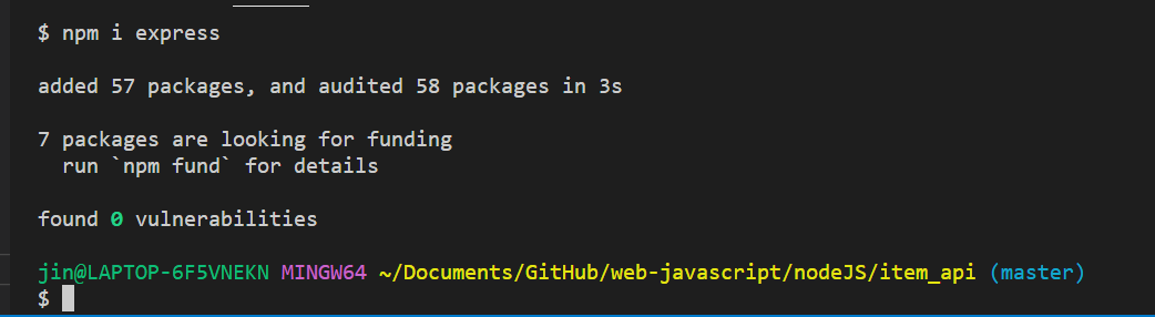 npm 패키지 중의 하나인 express를 설치합니다.