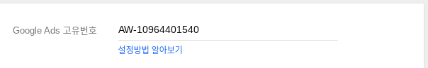 설정은 먼저 Ads 고유번호 란에 'AW-'를 포함한 Ads 아이디를 입력합니다.