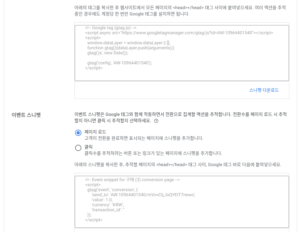 ※구글애즈에서 'AW-' 아이디 및 전환 라벨값 찾기