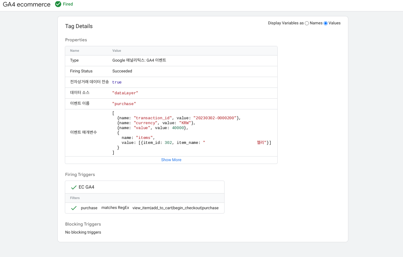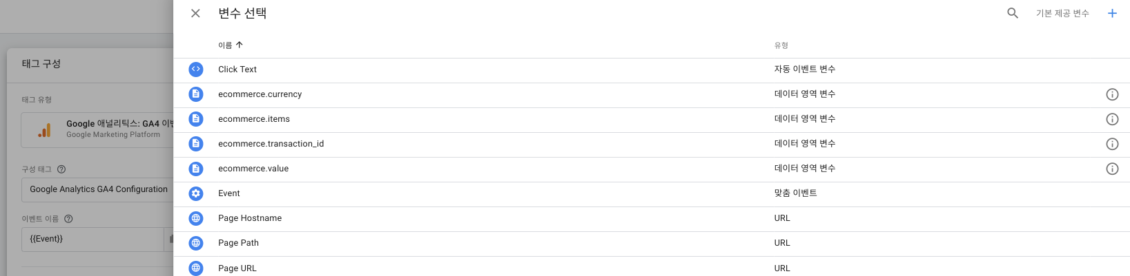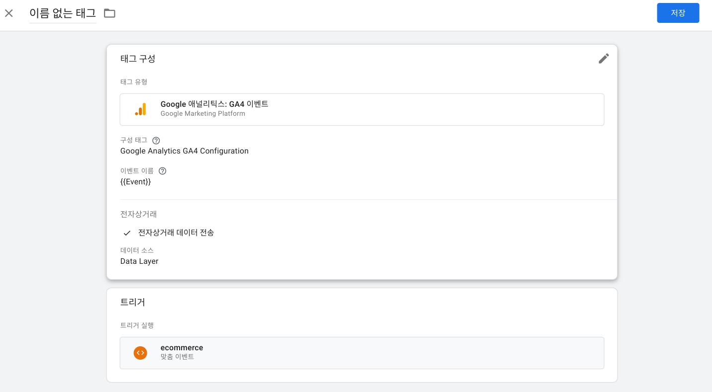 다음으로 매개 변수이름을 ecommerce 데이터레이어에 추가한 변수명에 맞게 추가합니다.
