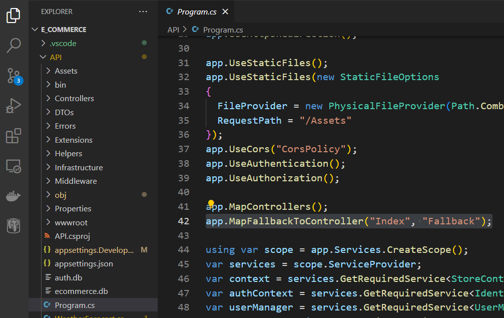 에이피아이 폴더에 에셋들을 담을 새 폴더를 만들고 wwwroot 폴더의 스태틱 파일들을 생성한 폴더로 이동