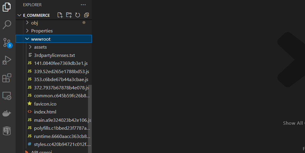 에이피아이 폴더에 에셋들을 담을 새 폴더를 만들고 wwwroot 폴더의 스태틱 파일들을 생성한 폴더로 이동