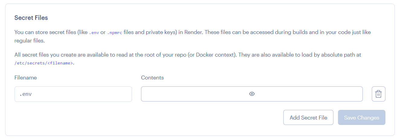 ※ .env를 사용하여 환경변수를 사용하는 경우 해당 환경변수의 명과 값도 지정해 줍니다. 지정은 변수명 또는