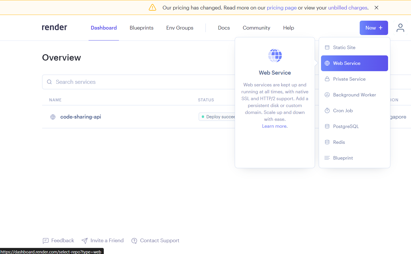 배포된 애플리케이션 Angular와 MongDB를 사용하여 만들어졌으며 Render의 무료버전은 MongDB를 지원하지 않기 때문에 MongDB을 지원하는 가장 저렴한 플랜으로 배포되었습니다 (무료 배포 아님).