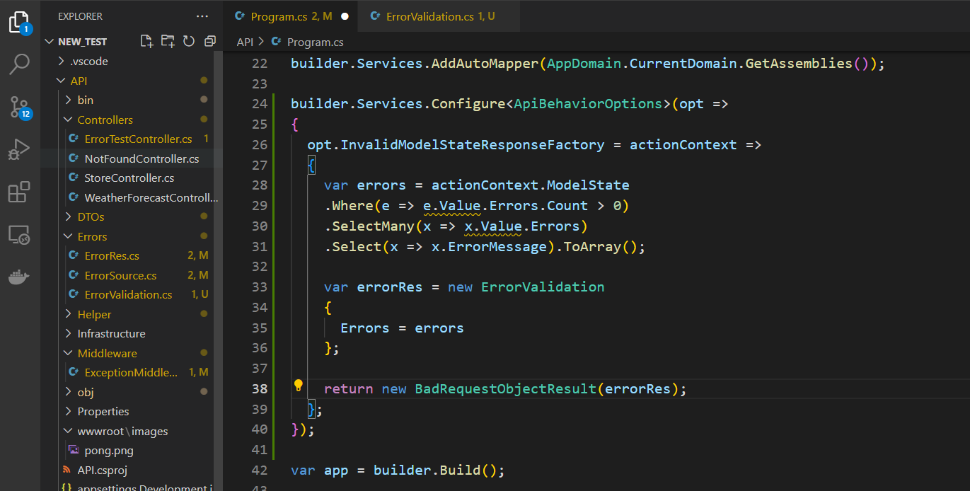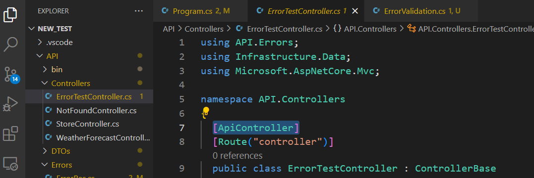 Program.cs 파일로 이동하여 존재하지 않는 엔드포인트 접근시도 시 위에서 설정한 컨트롤러경로로 전환되게 설정합니다