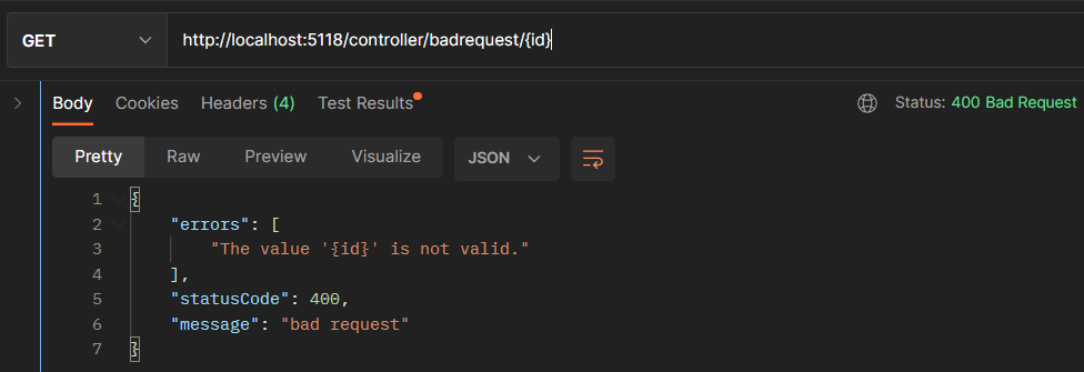 기본 에러메시지는 [ApiController] 메타태그에서 제공합니다. 따라서 반환되는 메시지의 형태변경은 해당 메타태그에 옵션을 변경하여 구현합니다