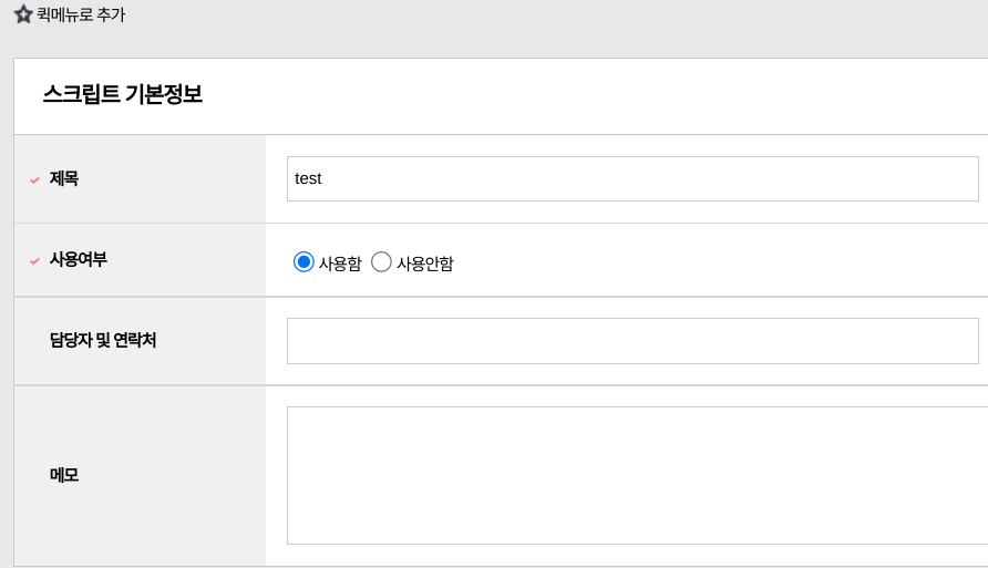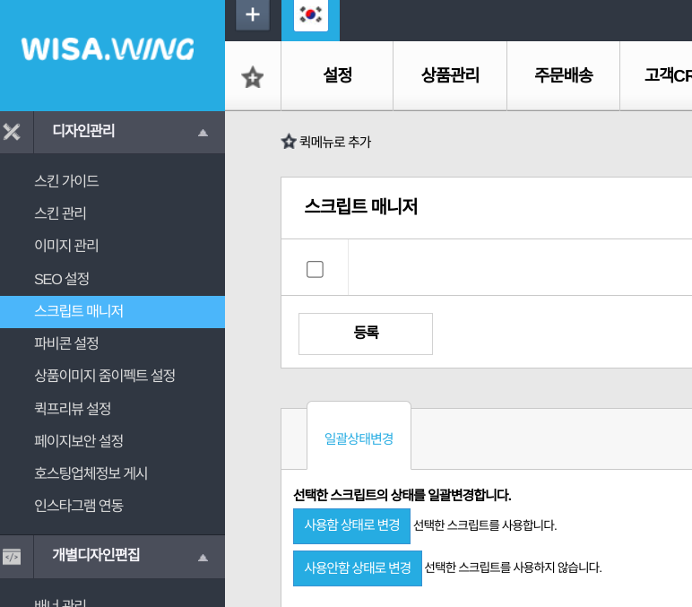 좌측 메뉴에서 '스크립트 매니저' -> '등록' 순으로 선택