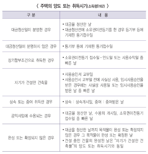 다만, 1세대 1 주택의 경우 보유기간이 2년 이상이고 고가주택에 해당하지 않는 경우 비과세. 취득 당시 조정지역에 해당하는 주택의 경우 보유기간 중 2년 이상 거주한 경우만 비과세 (단, 민간임대주택 사업자로 등록한 경우 거주요건 불필요)