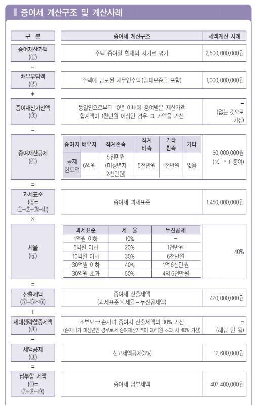 증여재산가산액: 주택 증여일 전 10년 이내 동일인으로부터 받은 증여재산가액을 합친 금액이 1천만 원 이상인 경우 그 가액을 해당 주택 증여세 과세가액에 가산