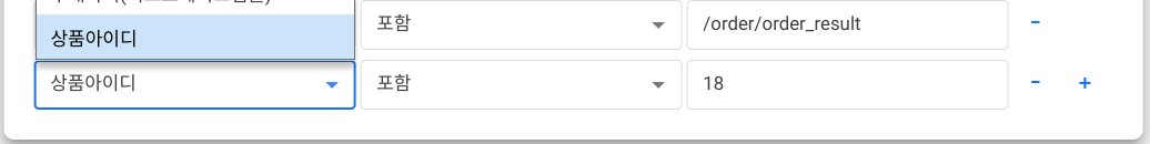 해당 상품에서만 전환이 일어나도록 조건을 추가하기 위해 '+'아이콘 선택