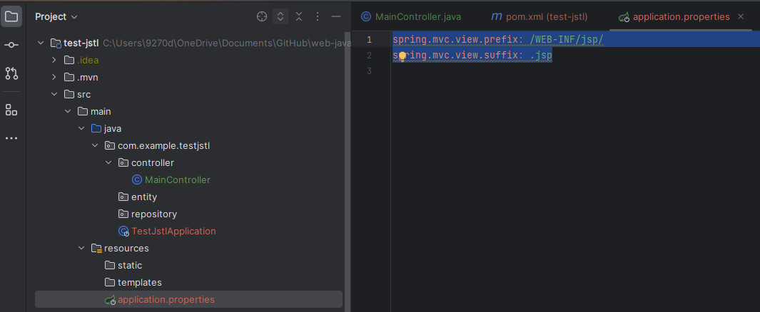 main -> resource -> template 아래 컨트롤러에 설정한 이름으로 템플릿 파일생성