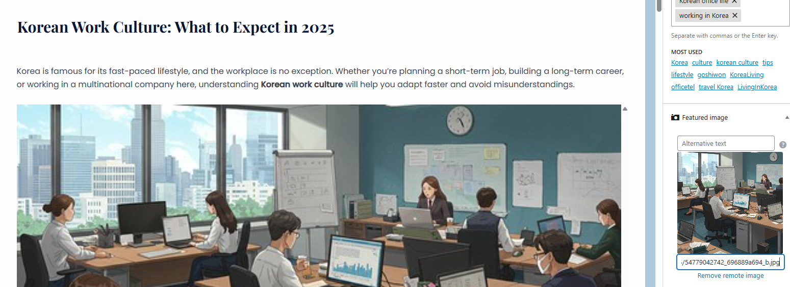 - 콘텐츠 발행 효율성 증대: 일일이 대표 이미지를 지정하고 업로드하는 번거로움이 줄어들어, 콘텐츠 작성에 더 집중하고 발행 시간을 절약할 수 있습니다.