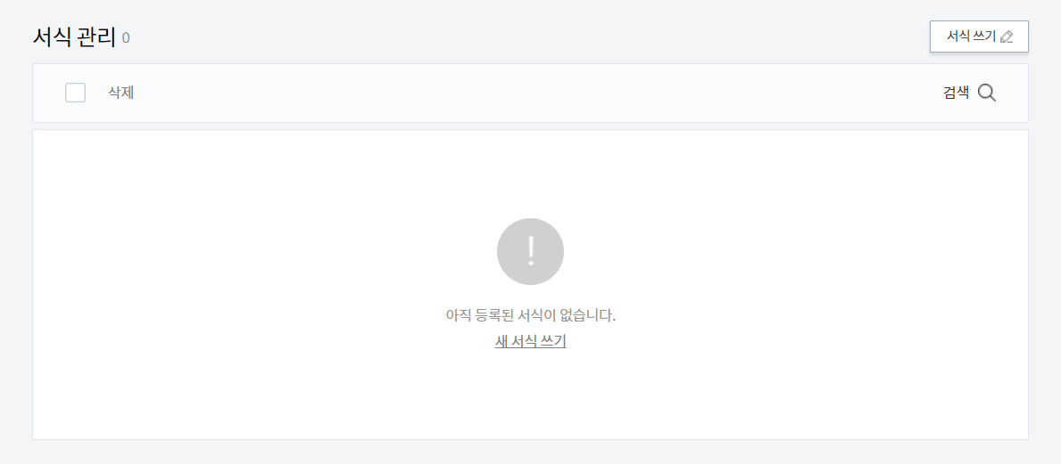 국문 서식을 만들기 위해, 다시 서식관리로 돌아가 '서식 쓰기'를 선택하고 다국어 블로그 포스트에서 필요한 코드를 복사 (이동링크) 후