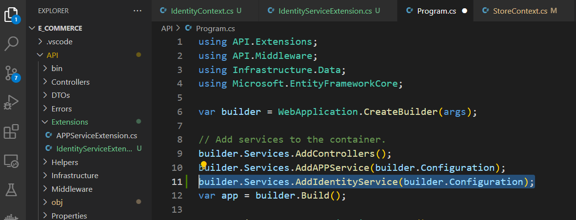 아이덴티티 서비스 익스텐션 클래스로 이동하여 아래 코드를 추가합니다