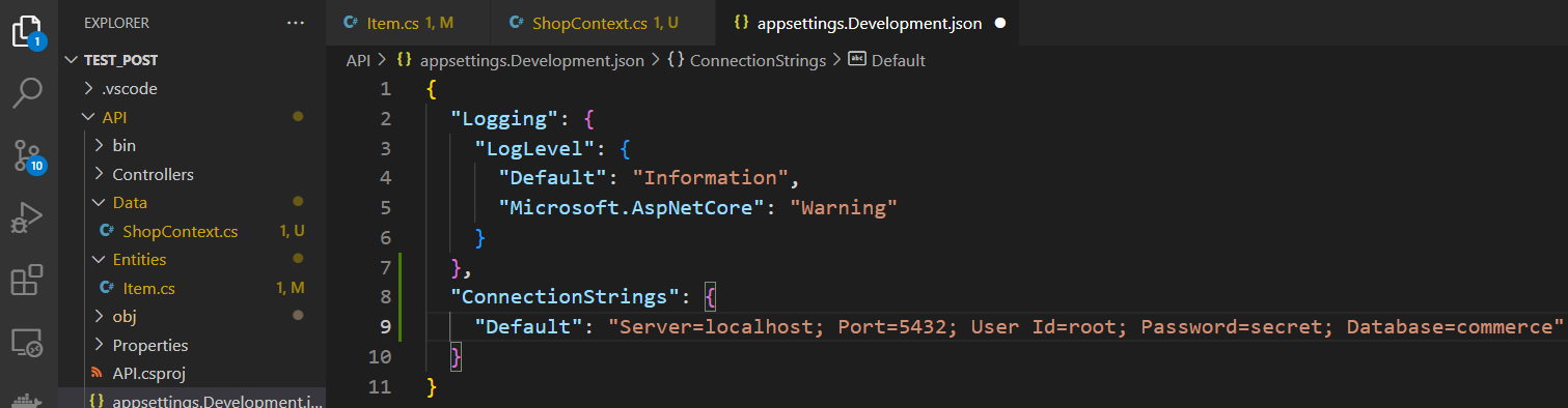 "Default": "Server=localhost; Port=5432; User Id=root; Password=secret; Database=commerce"