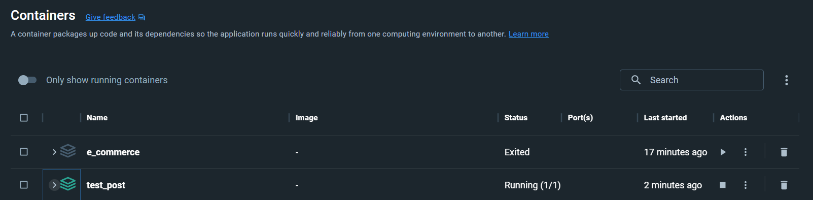 닥커 데스크톱에 생성된 데이터베이스 구동 (재생버튼)