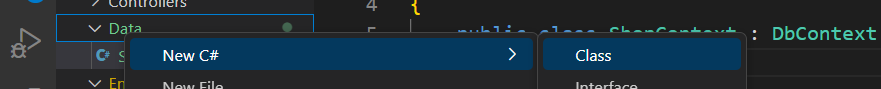 생성된 폴더를 우클릭하여 C# 클래스를 생성합니다.