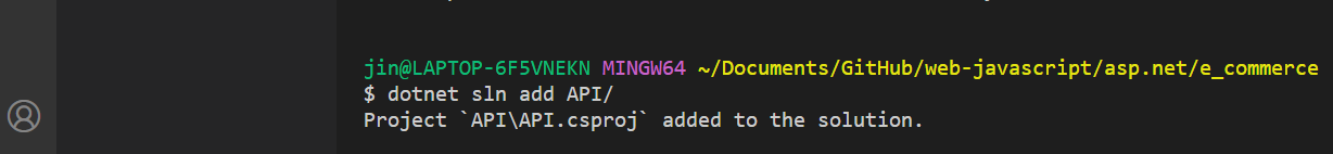 web API를 생성합니다. -o 옵션은 생성된 파일을 담을 장소를 (output) 의미하며 여기서는 API라는 폴더로 지정하였습니다.