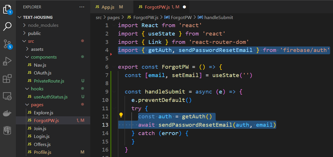 Import the authentication and reset password function