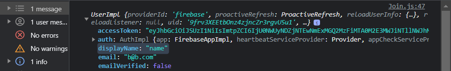 ※ To persist the user information on the browser, Firebase uses Indexed DB to store the record
