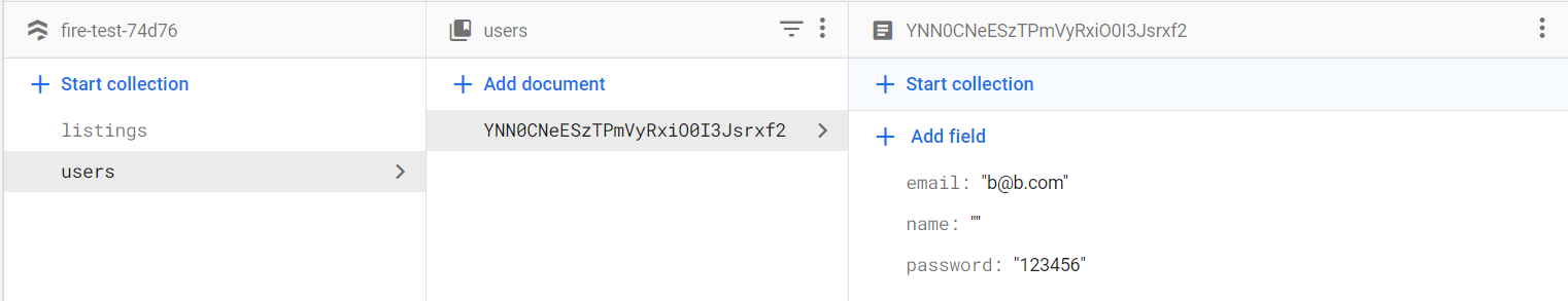 If there were no errors, a new user would also be saved in the Firebase.