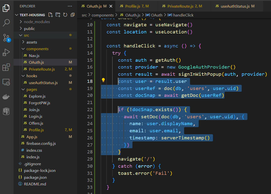 Note that like standard authentication Google OAuth works separately from the database service. So we have to store the data to use the authentication information when logging in.