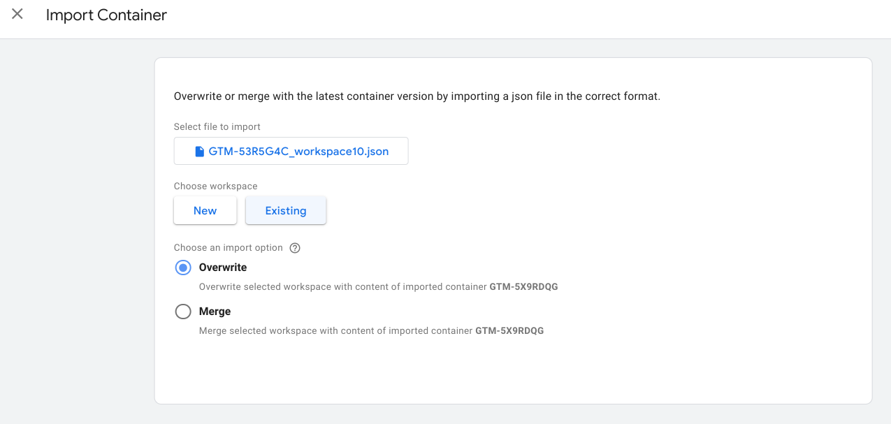 GTM Container export/import