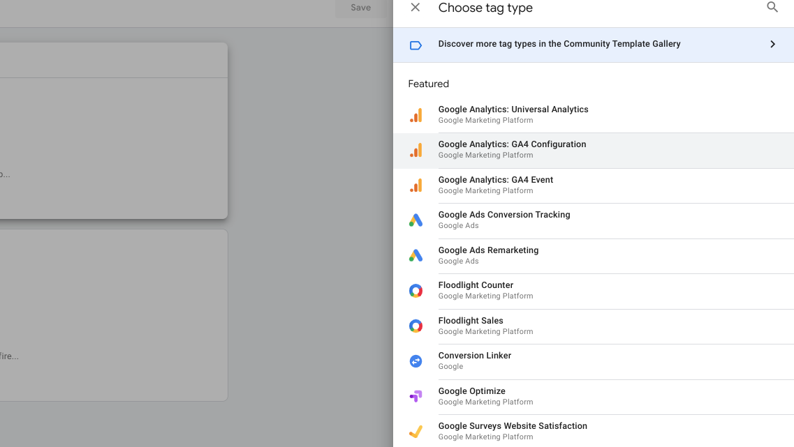 Select 'Google Analytics: GA4 Configulation'