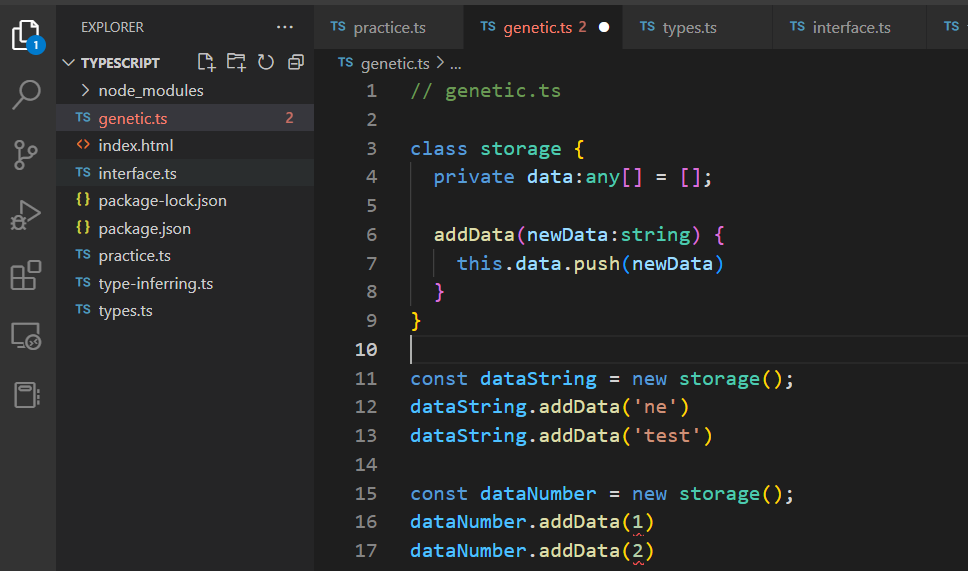 먼저, 아무런 타입제한이 없는 경우의 코드입니다. 타입의 제한이 없기 때문에 배열에 아무런 값이나 들어갈 수 있습니다.