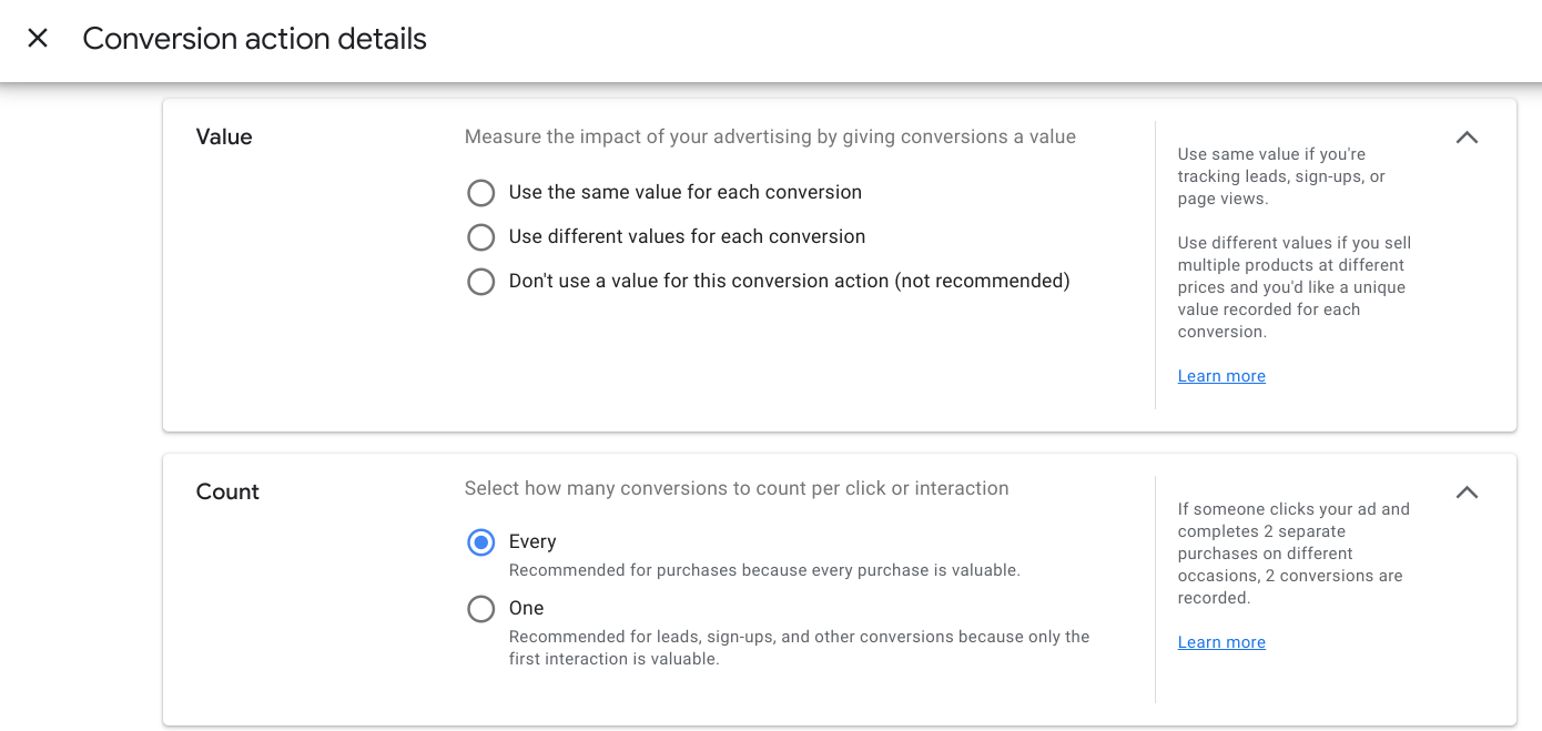 Click ‘+New conversion action’