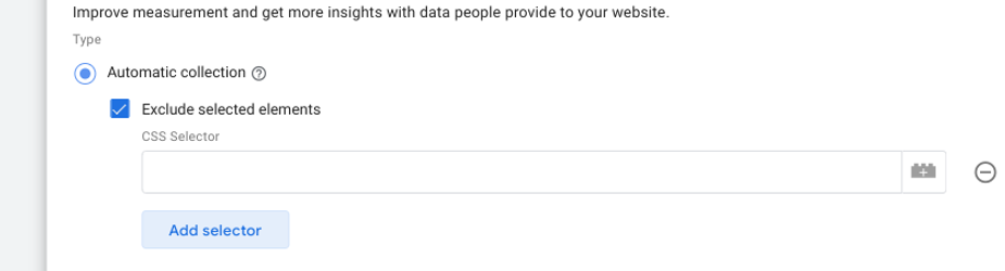 But this option picks up whatever it will find the first on the conversion page. So If you want to exclude emails that might interfere with the actual email you want check the ‘Exclude selected elements’ and paste CSS Selector.
