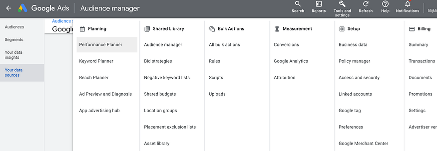 Select ‘Tools and setting’ in the top menu -> ‘Audience manager’ under Shared library