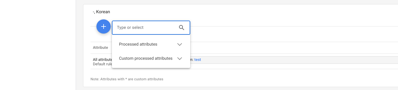 Choose 'processed attributes' for existing attribute name or 'custom processed attribute' for attribute names that are not included the list of Google feed attributes names