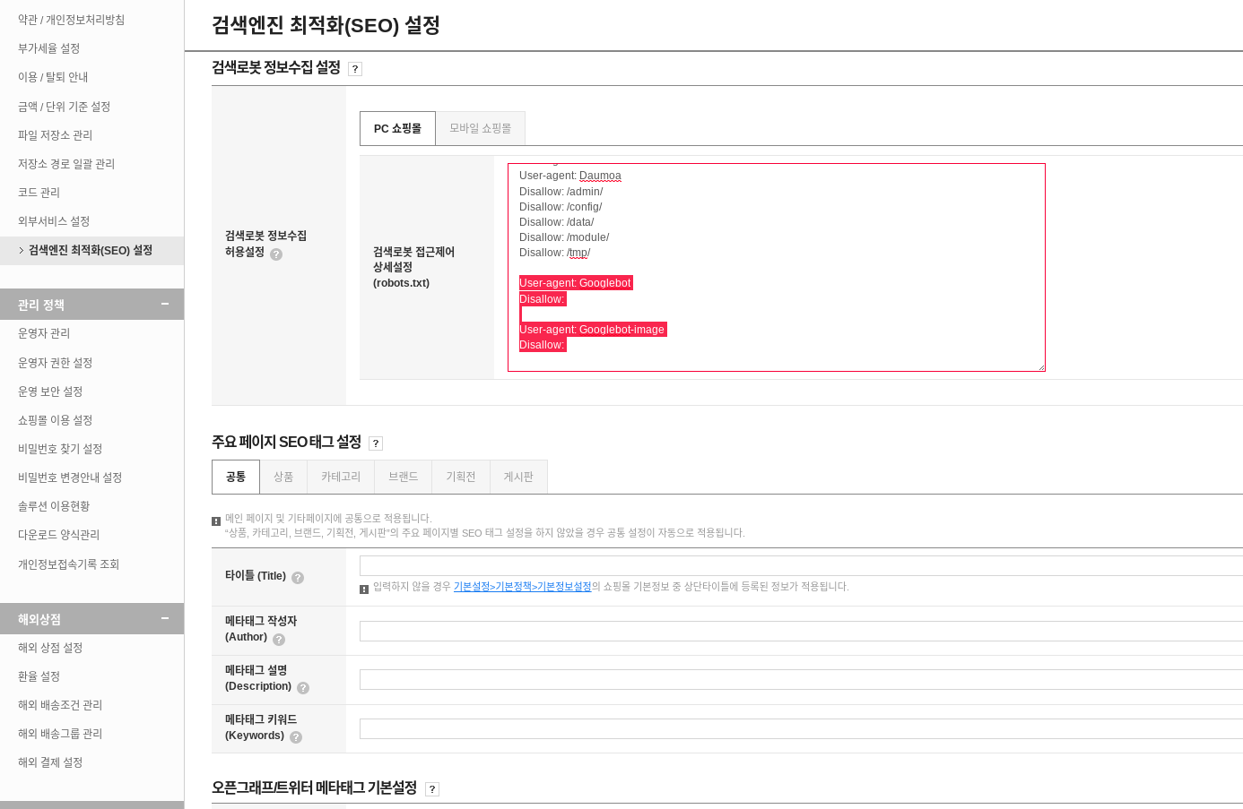 Delete the code (User-agent: Googlebot) below in the 'robot.txt' setting file