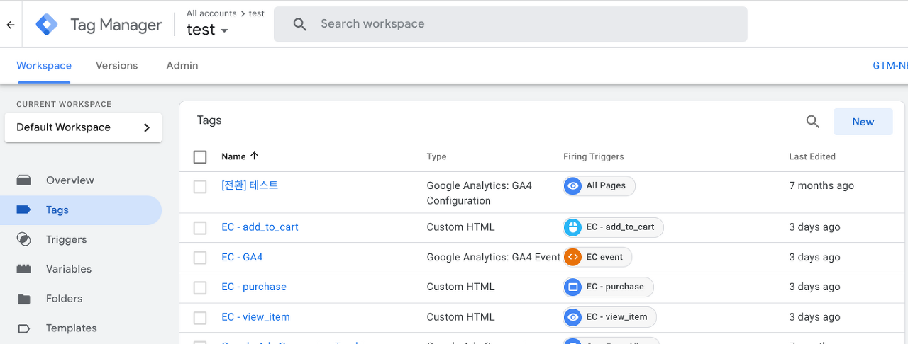 Go to your GTM container and click ‘Tags’ under Workspace then click ‘New’ on the right side